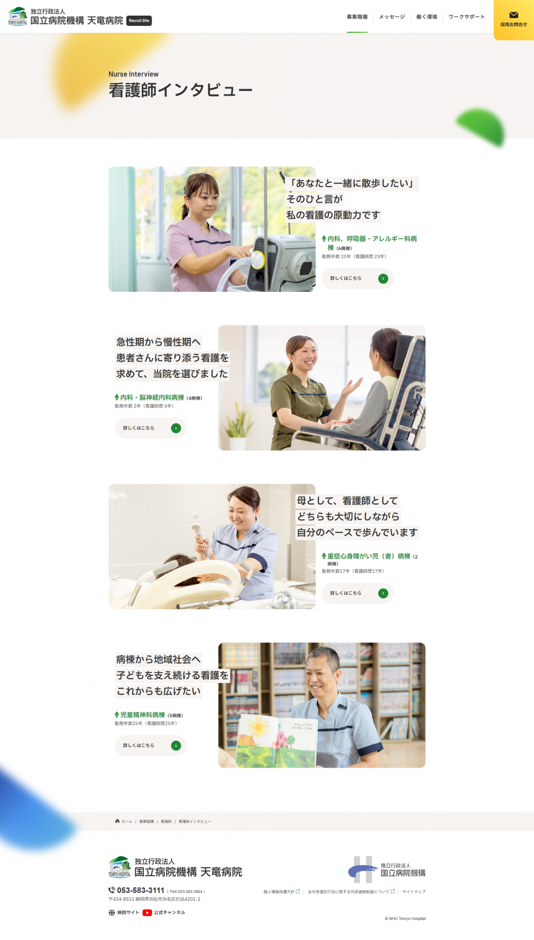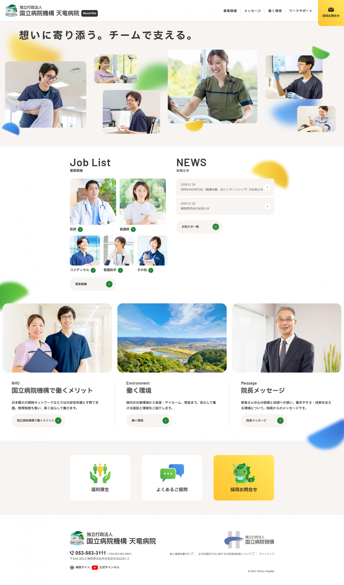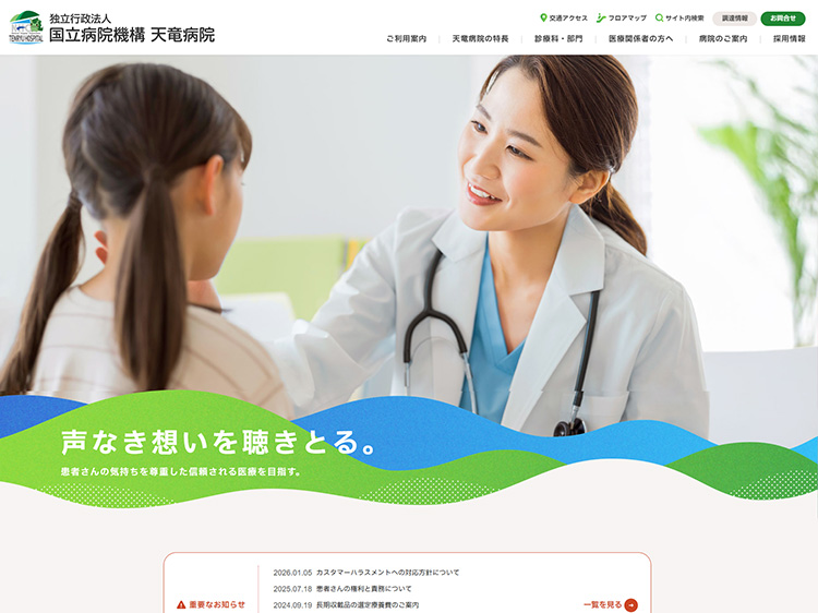 本リニューアルにより、天竜病院様の専門性と地域医療への取り組み、そして働く人の魅力を、より分かりやすく発信できるウェブサイトへと刷新しています。