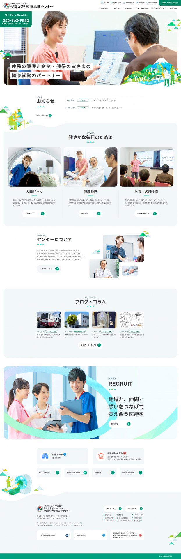 静岡県東部において、地域の健康・医療・福祉を支える一般財団法人 芙蓉協会様のウェブサイトリニューアルを担当させていただきました。芙蓉協会様は、沼津市において、聖隷沼津病院、聖隷沼津健康診断センター、聖隷訪問看護ステーション千本、看護小規模多機能型居宅介護事業所せいれい緑町を運営し、健診・予防から医療、在宅サービスまで切れ目のない支援を提供されています。本プロジェクトでは法人サイトをはじめ、各施設サイトおよび採用サイトを含む複数サイトの制作を一貫して担当しました。